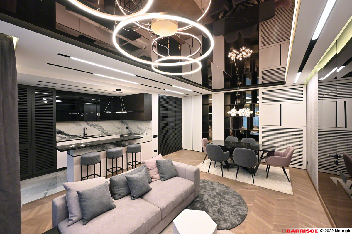 Класически опънати тавани Barrisol приложими за домашни, офисни, медицински, санитарни, производствени, търговски и много други площи. Системите Барисол имат богат избор на модели и цветове - мат, лак с огледален ефект, сатен или металик.